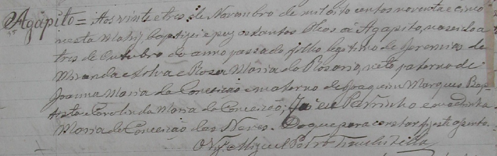 - Agapito, nascido no dia 03/10/1894, batizado no dia 23/11/1895, na Matriz de Anchieta-ES