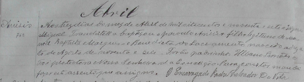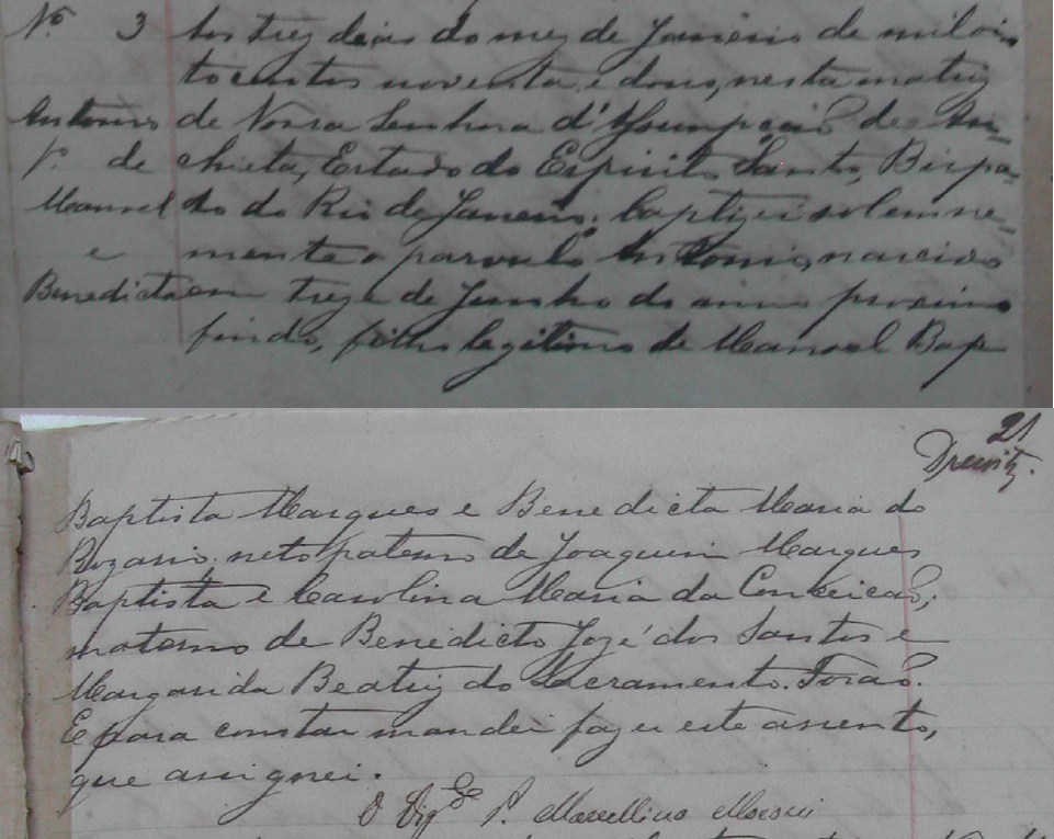 - Manoel Marques da Silva (Manoel Batista Marques) c.c. Benedita Maria do Rozario, filha de Benedito Jose dos Santos e Margarida Beatriz do Sacramento