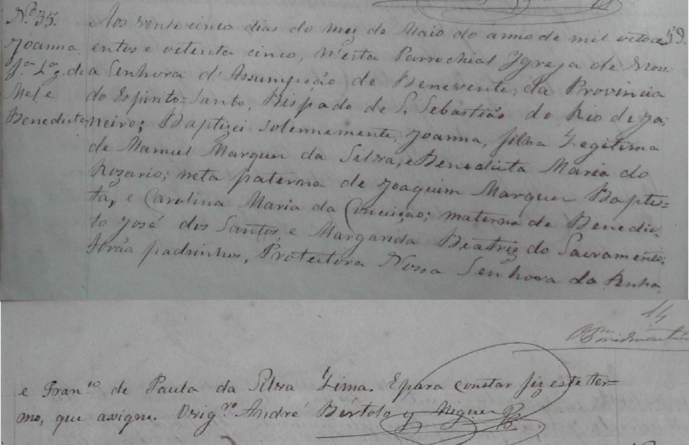 - Joanna, batizada no dia 25/05/1885, na Parochial Igreja de Nossa Senhora da Assumpção de Benevente-ES