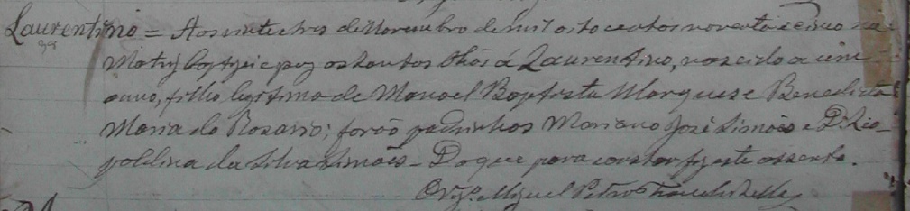 - Laurentino, batizado no dia 23/11/1895, na Matriz de Anchieta-ES