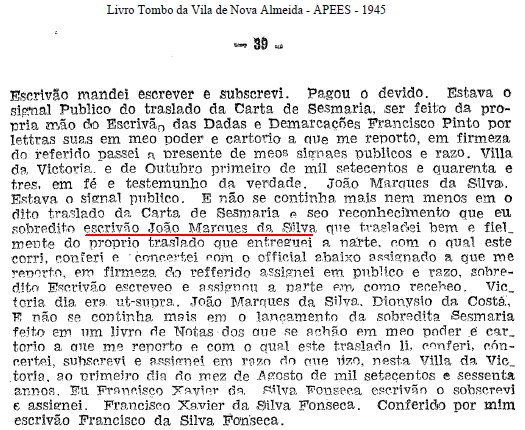 Antepassado: (Certamente) João Marque da Silva escrivão do