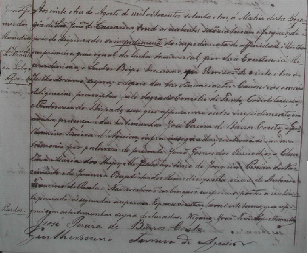 Casaram-se no dia 23/1873, na Matriz da Freguezia de São João de Cariacica-ES