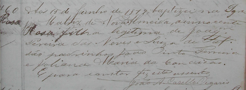- Rosa, batizada no dia 15/06/1879, na Matriz de Nova Almeida-ES
