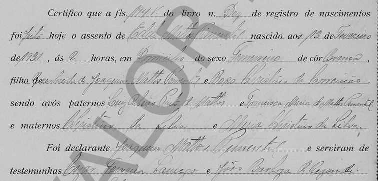 (nasceu no dia 13/02/1931, às 2 horas, em Santa Cruz-ES)