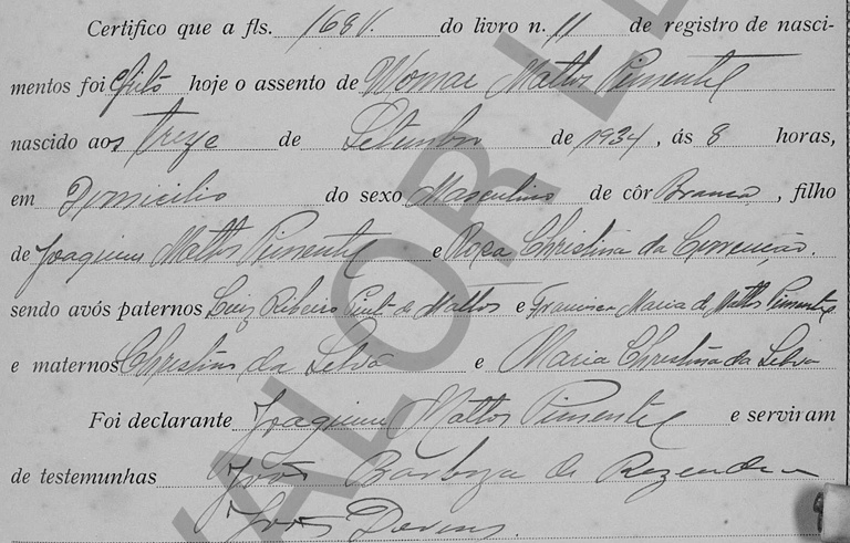 - Womar Mattos Pimentel (13/09/1934, às 8 horas, em Riacho-ES)