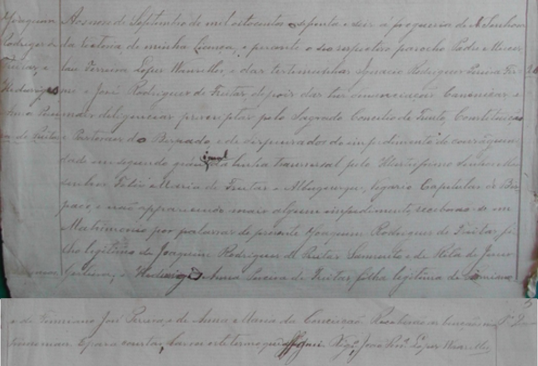 Testemunhas do casamento(ato religioso): Joaquim Alvaro Campos e Anna Rodrigues de Freitas (Irmã?)