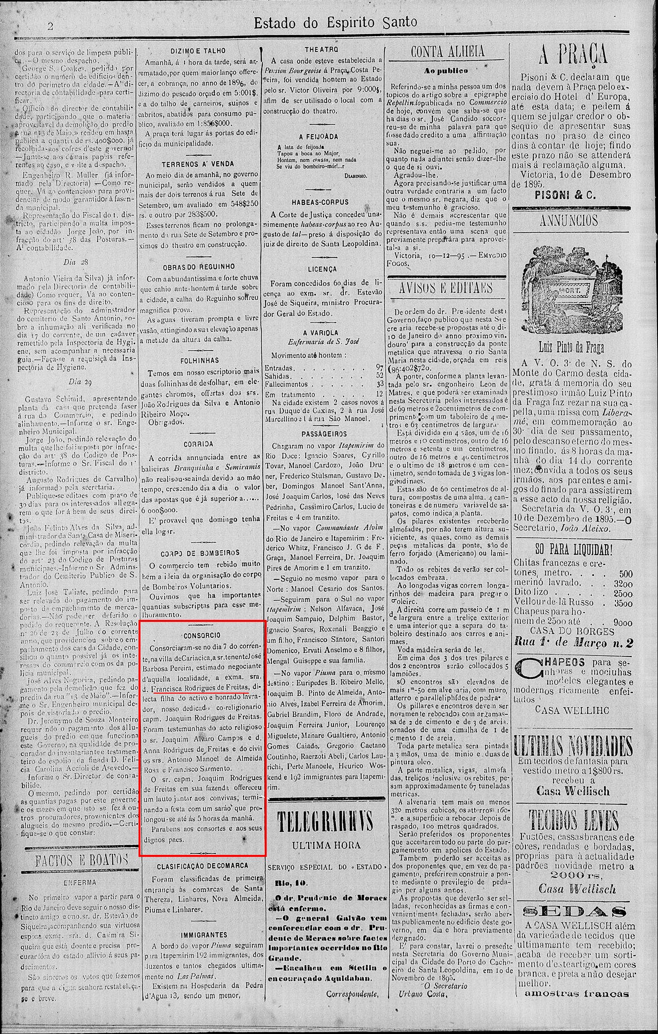 Casaram-se no dia 07/12/1895, em Cariacica-ES, conforme jornal abaixo