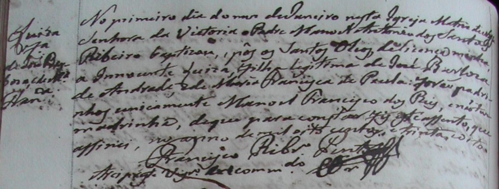 - Luiza, batizada no dia 01/01/1838, na Matriz de Vitória - ES