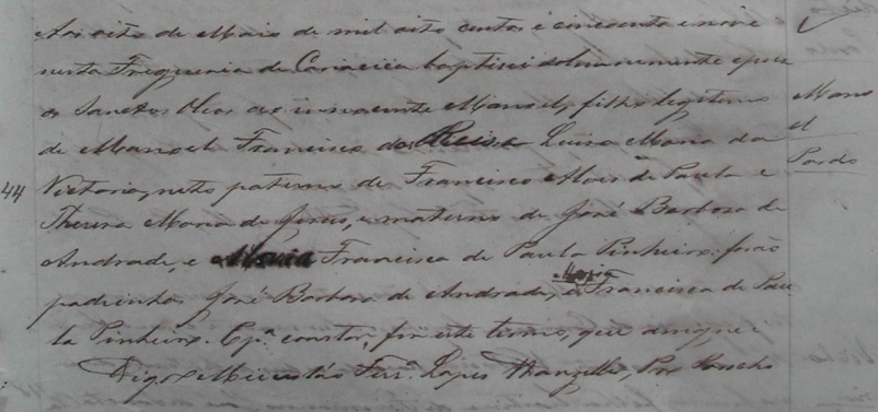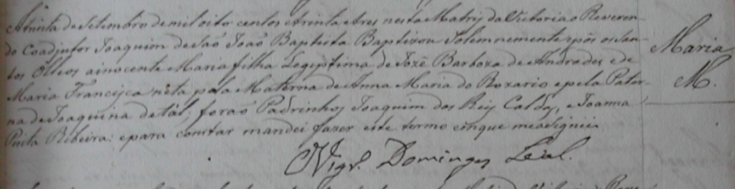 - Maria, batizada no dia 30/09/1833, na Matriz de Vitoria-ES