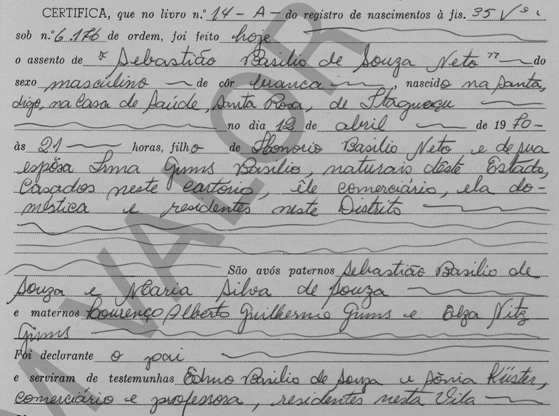 - Sebastião Basilio de Souza Neto (12/04/1970, às 21 horas, em Itaguaçu-ES)