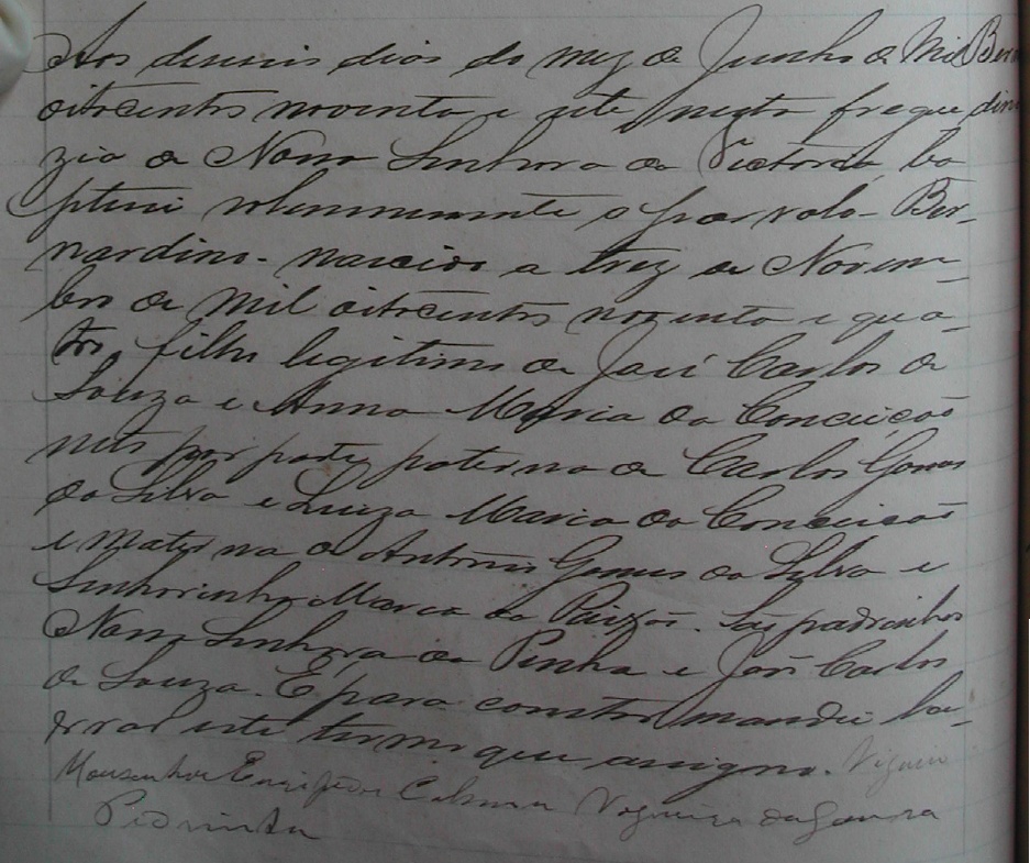 - Bernartdino, nascido no dia 03/11/1894, batizado no dia 16/06/1897, na freguezia de Nossa Senhora da Vitoria-ES