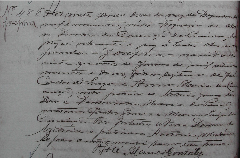 - Josephina, nascida no dia 24/01/1892, batizada no dia 25/12/1900, na Freguezia de Nossa Senhora da Conceição da Prainha de Vila Velha-ES
