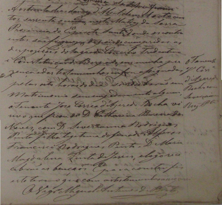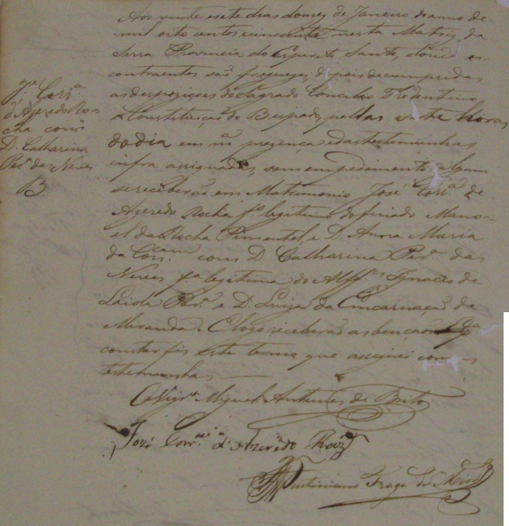 (Certamente) Jose Correia de Azeredo Rocha c.c. Severiana Rodrigues Pinto da Conceição