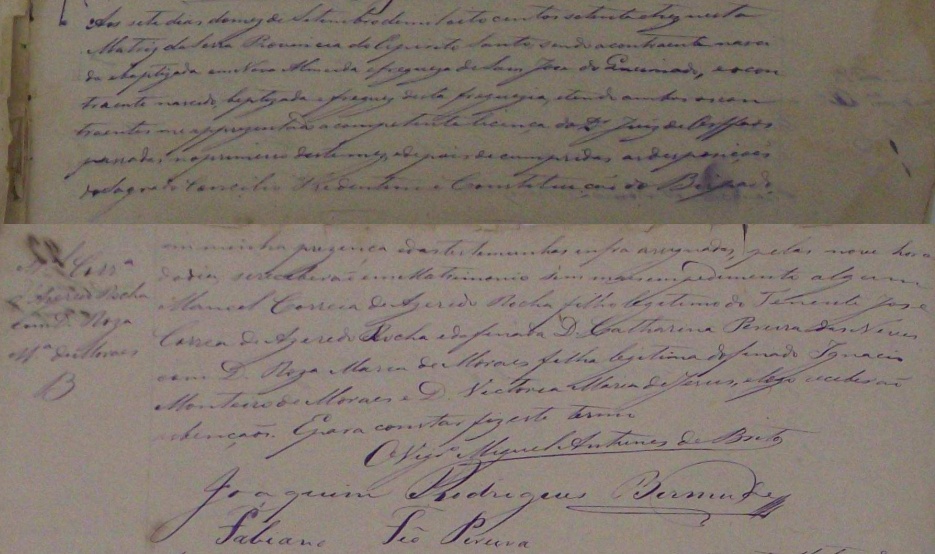 Casaram-se no dia 30/04/1865, na Matriz da Serra-ES, pelas 8 horas do dia
