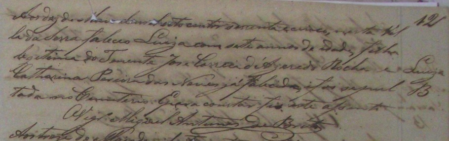 - Luiza, falecida no dia 10/05/1865, na Vila da Serra-ES, com 7 anos de idade