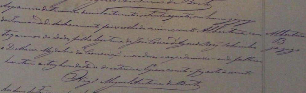- Albertina, faleceu no dia 31/01/1874, ás 03 horas da tarde, sepultada no dia 01/02/1874, na Serra-ES, com 03 anos de idade.