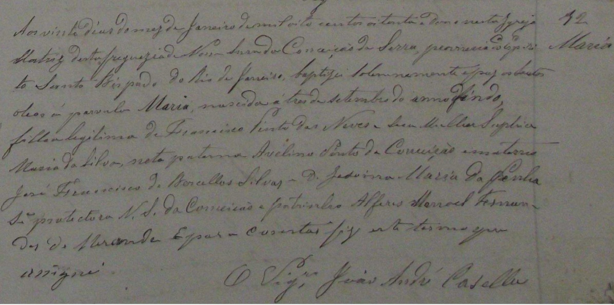 - Maria, nascida no dia 03/09/1881, batizada no dia 20/01/1882, na Matriz da Serra-ES