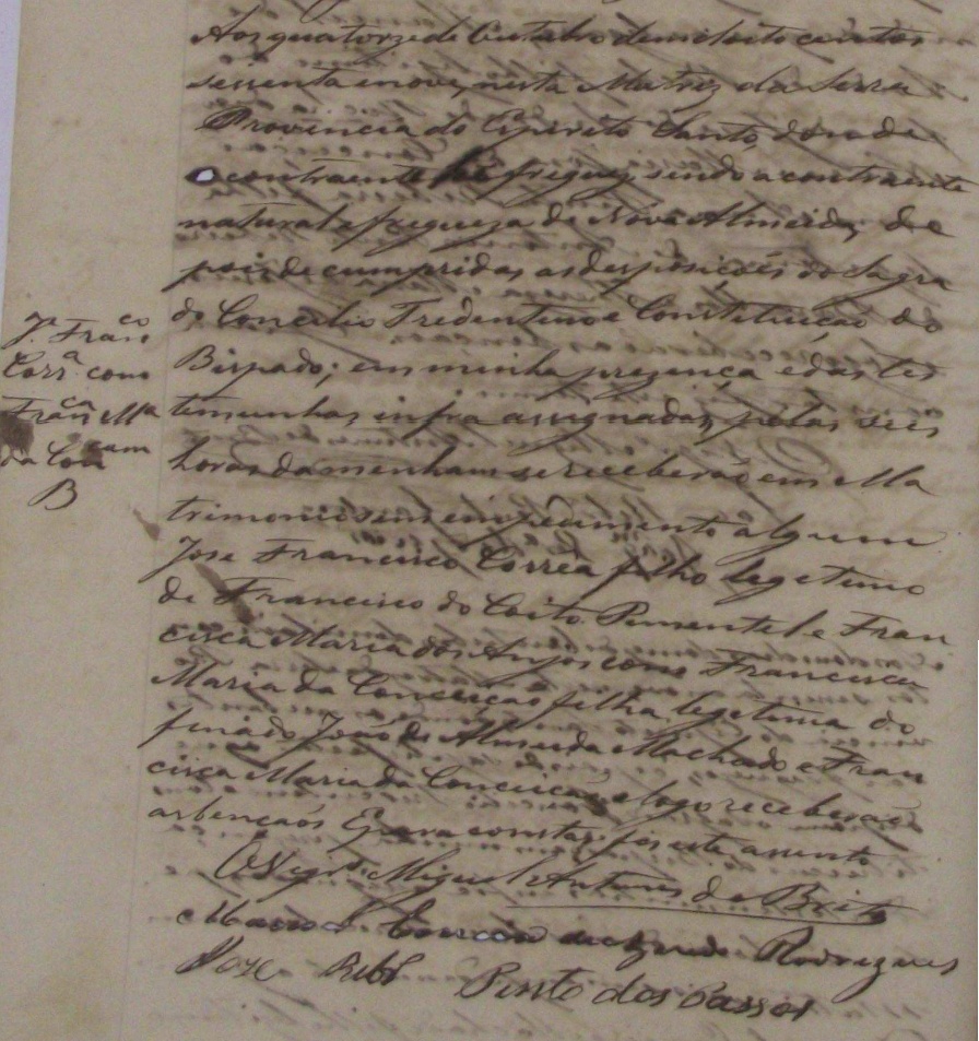 Testemunhas: Manoel Correa de Azeredo Rodrigues e Jose Ribeiro Pinto dos Passos