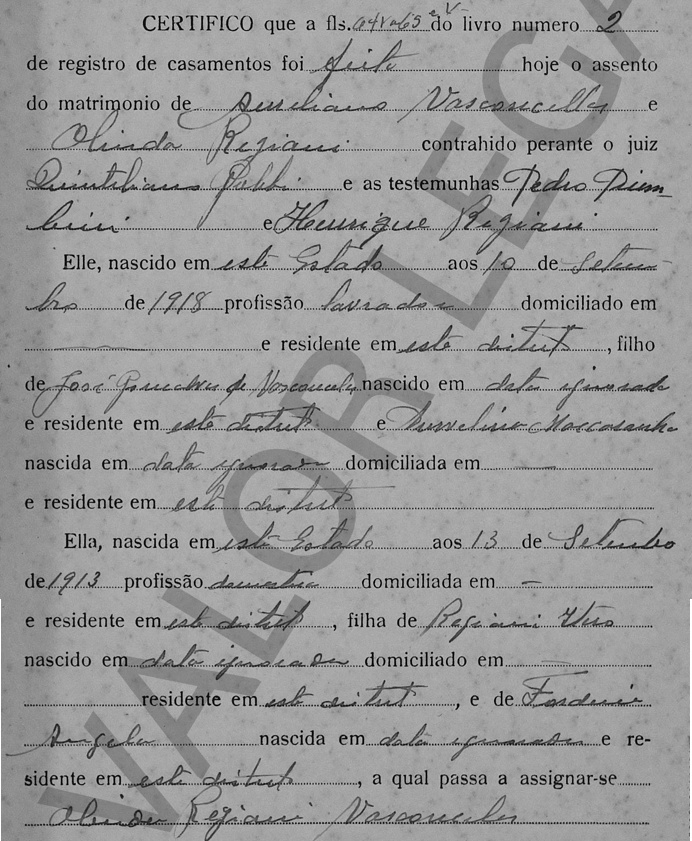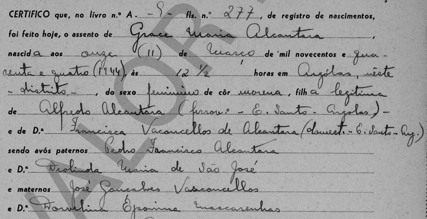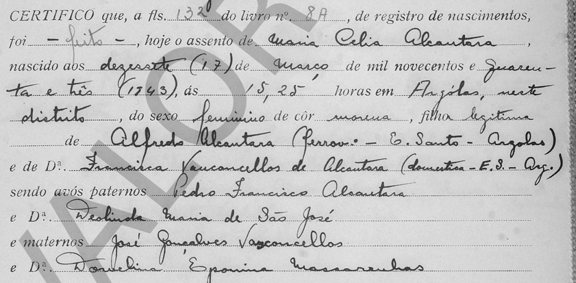 Pais: Aureliano da Silveira Vasconcellos e Maria Gonçalves Vasconcellos