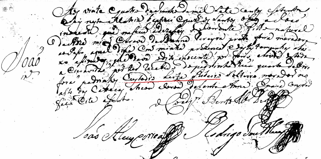 Custodio Leite Ribeiro, solteiro, padrinho em 1776, na Igreja de Nossa Senhoira da Conceição, Ouro Preto-MG