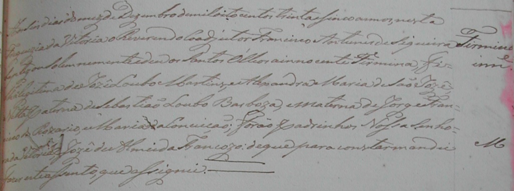 - Firmina, batizada no dia 06/12/1835, na Matriz de Vitoria-ES