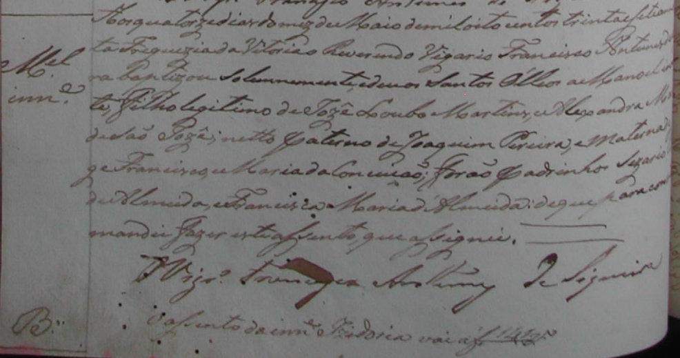 - Manoel, batizado no dia 14/05/1837, na Matriz de Vitoria-ES