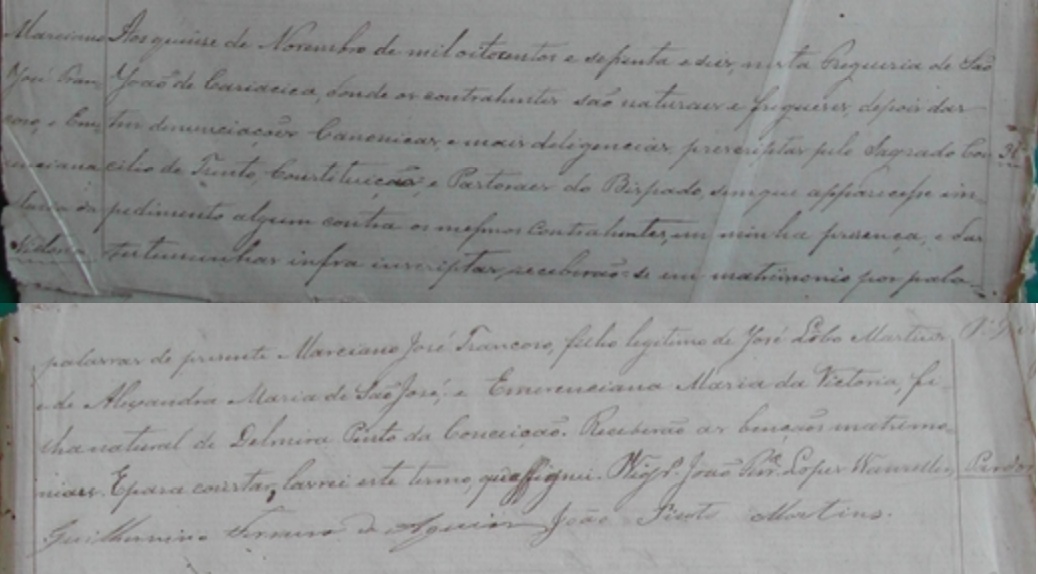 Marciano Jose Trancoso c.c. Emerenciana Maria da Victoria, filha natural de Delmira Pinto da Conceição