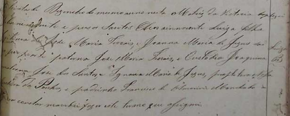 - Luiza, batizada no dia 30/12/1849, na Matriz de Vitoria-ES