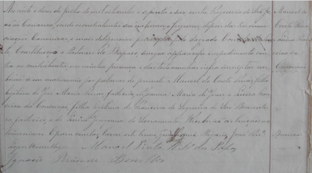 Manoel do Couto Ferrraz c.c. Luiza Francisca da Conceição, filha de Francisco de Siqueira de São Boaventura e Luiza Joaquina do Sacramento
