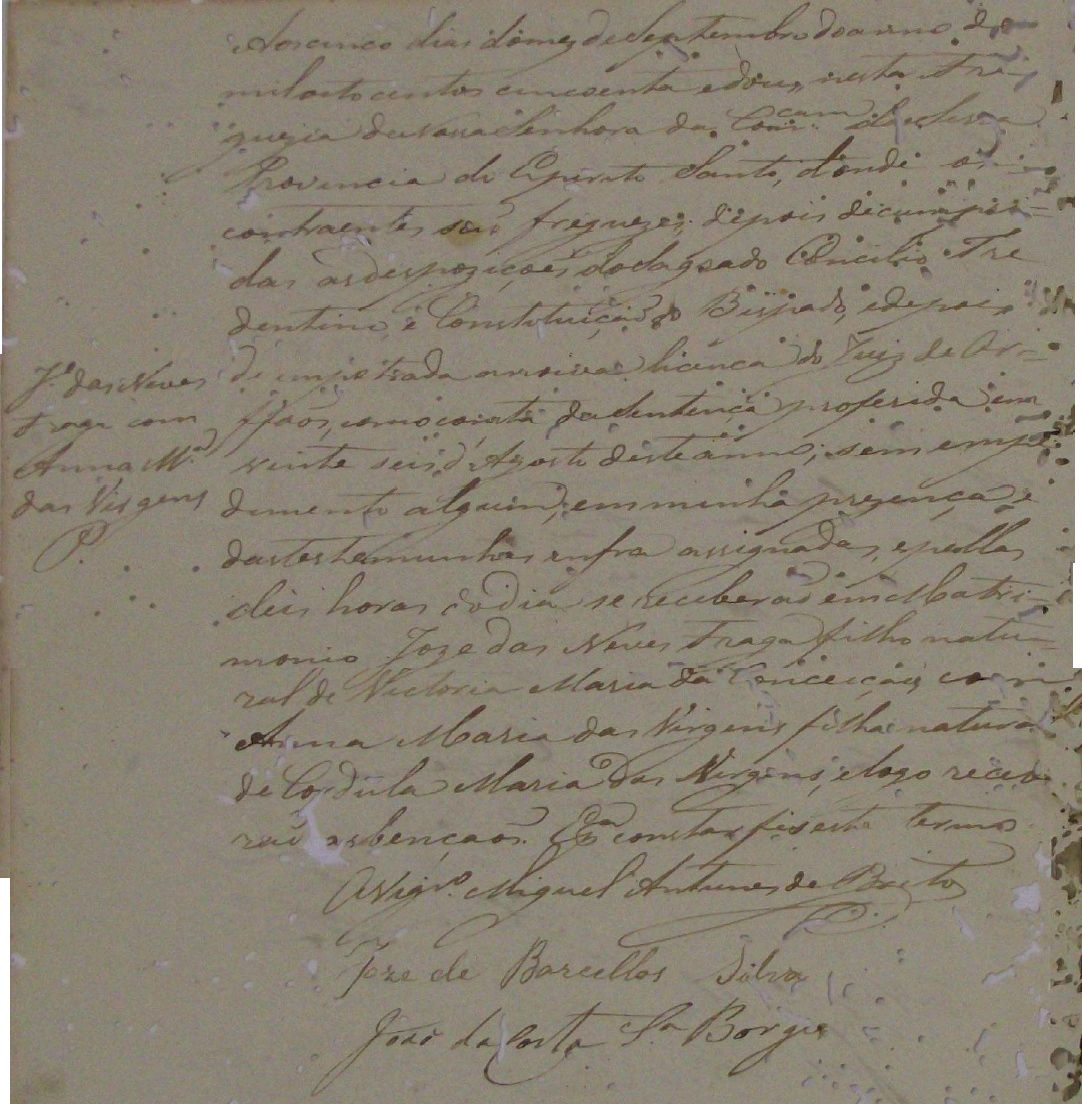- Auta (P), nascida no dia 14/06/1865, batizada no dia 07/01/1866, na Parochial Igreja de São Jose do Queimado-ES