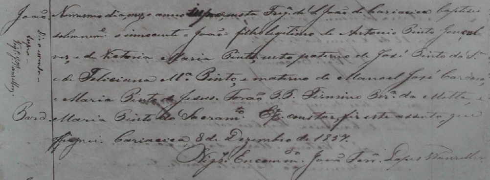 - João, batizado no dia 08/12/1857, na Freguezia de São João de Cariacica-ES