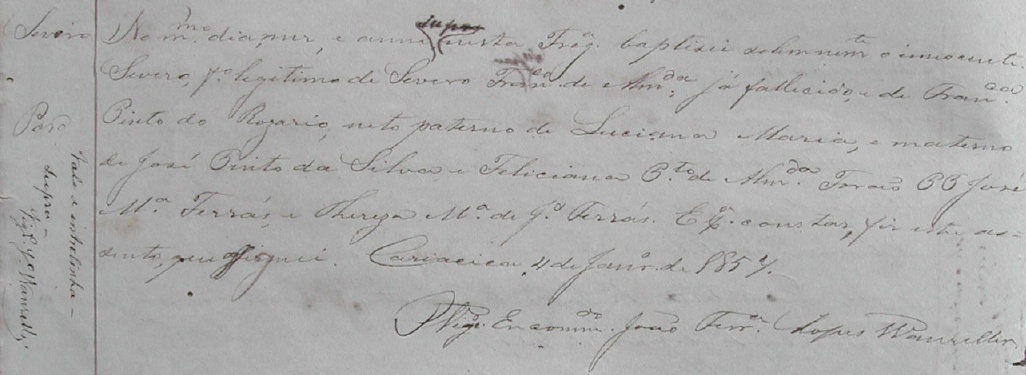 - Severo, batizado no dia 04/01/1857, na Freguezia de Cariacica-ES
