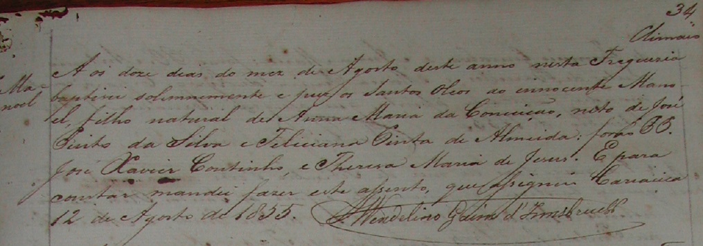 - Manoel, batizado no dia 12/08/1855, na Freguezia de Cariacica-ES