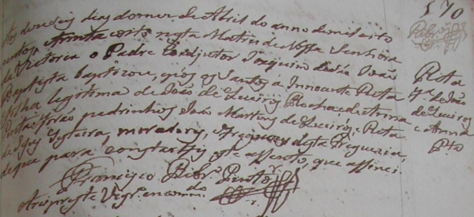 - Rita, batizada no dia 16/04/1838, na Matriz de Vitoria-ES