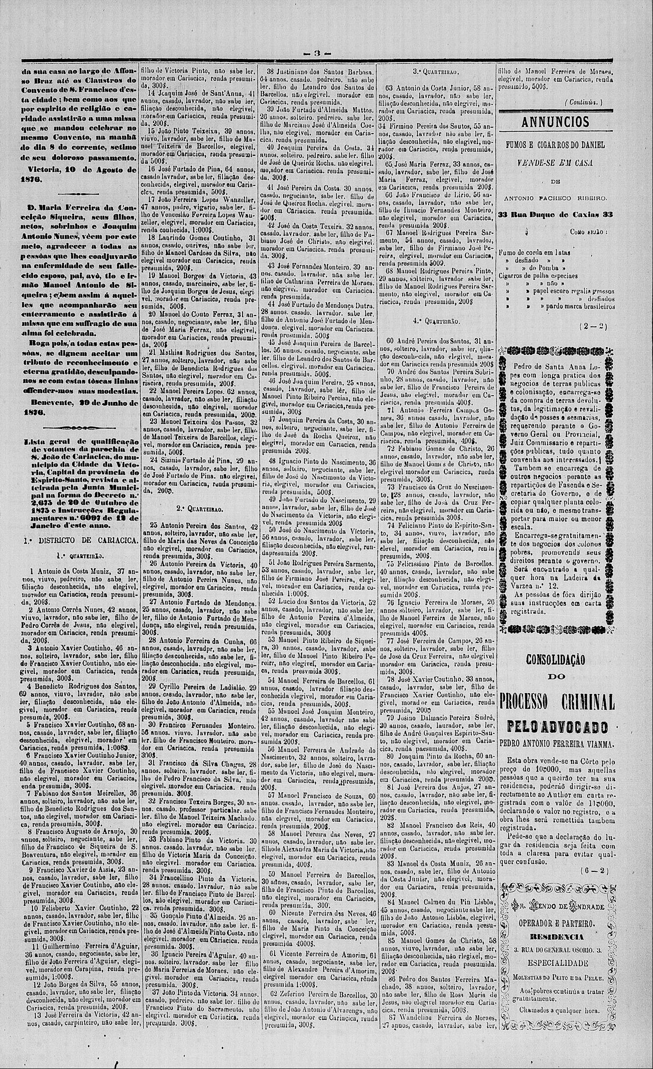 1876 - Lista de eleitores de Cariacica-ES