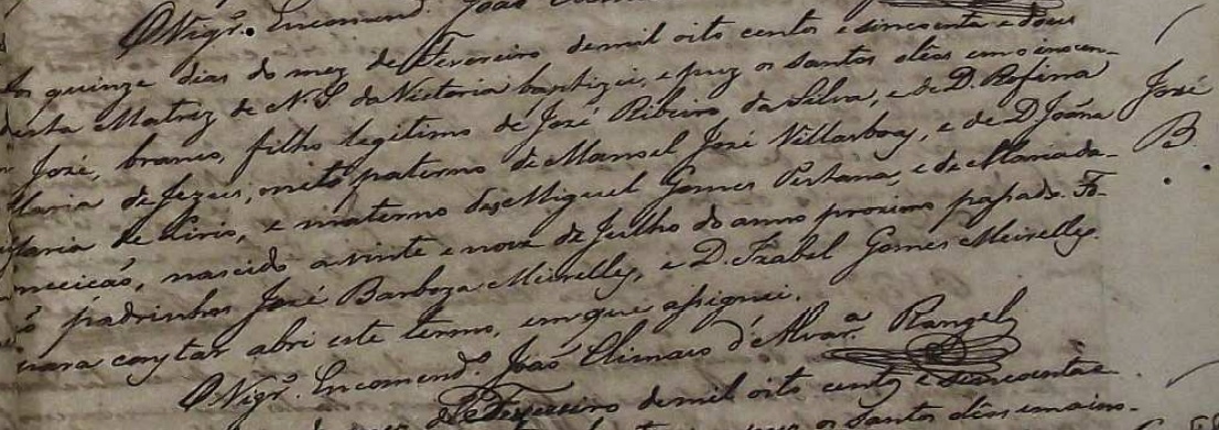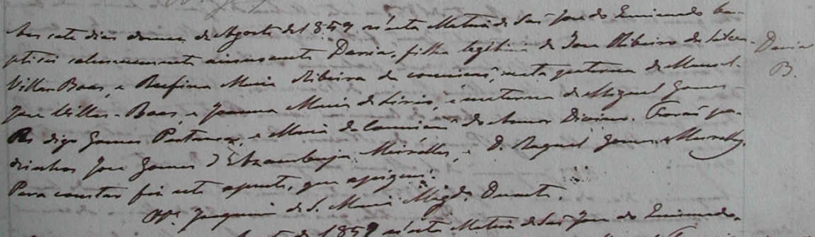 - Jose, nascido no dia 29/07/1851, batizado no dia 15/02/1852, na Matriz de Vitoria-ES
