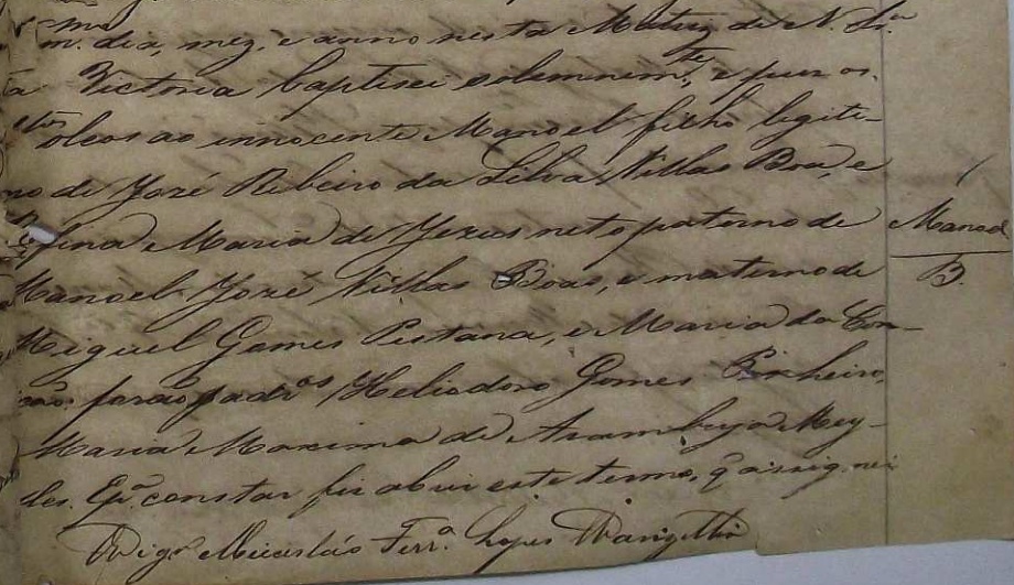 - Manoel, batizado no dia 08/10/1854, na Matriz de Vitoria-ES