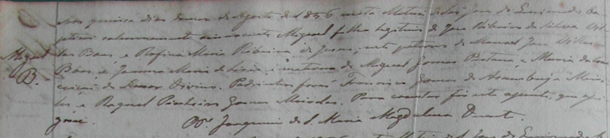- Miguel, batizado no dia 15/08/1856, na Matriz de São Joase do Queimado-ES