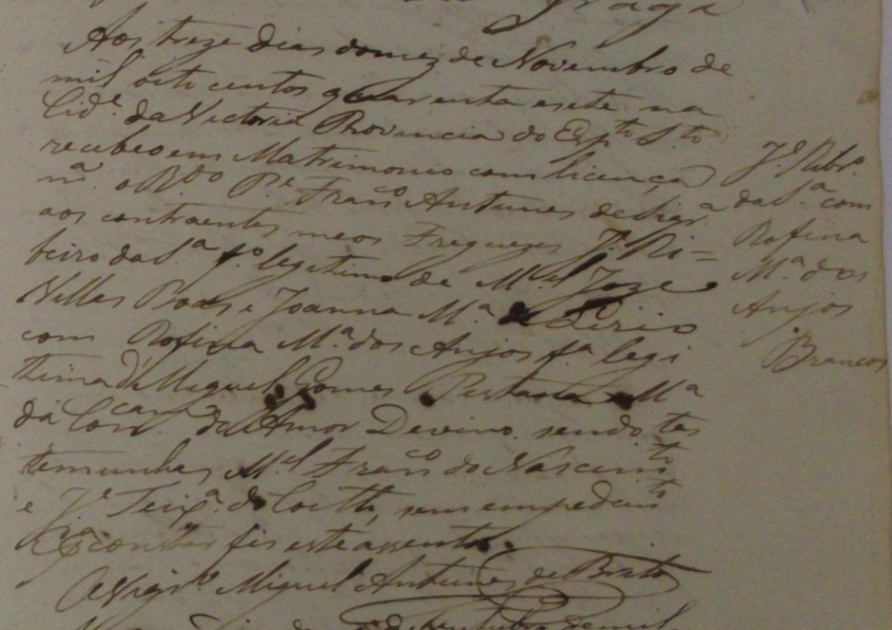 Casaram-se no dia 13/11/1847, na Cidade de Victoria-ES: