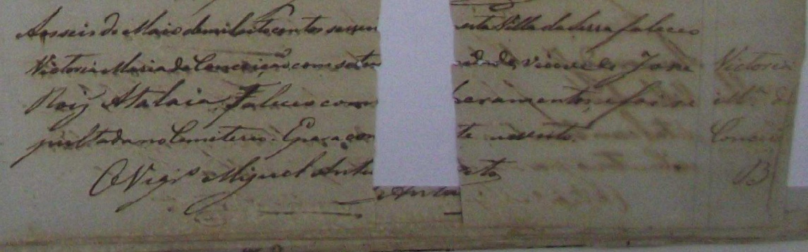 Victoria Maria da Conceição faleceu no dia 06/05/1864, na Vila da Serra-ES, con 70 anos de idade, vúva de Jose Rodrigues Atalaia