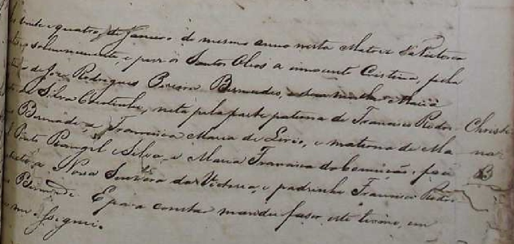 Padrinhos: Avós paternos (Francisco Rodrigues Bermudes e Francisca Maria de Lirio)