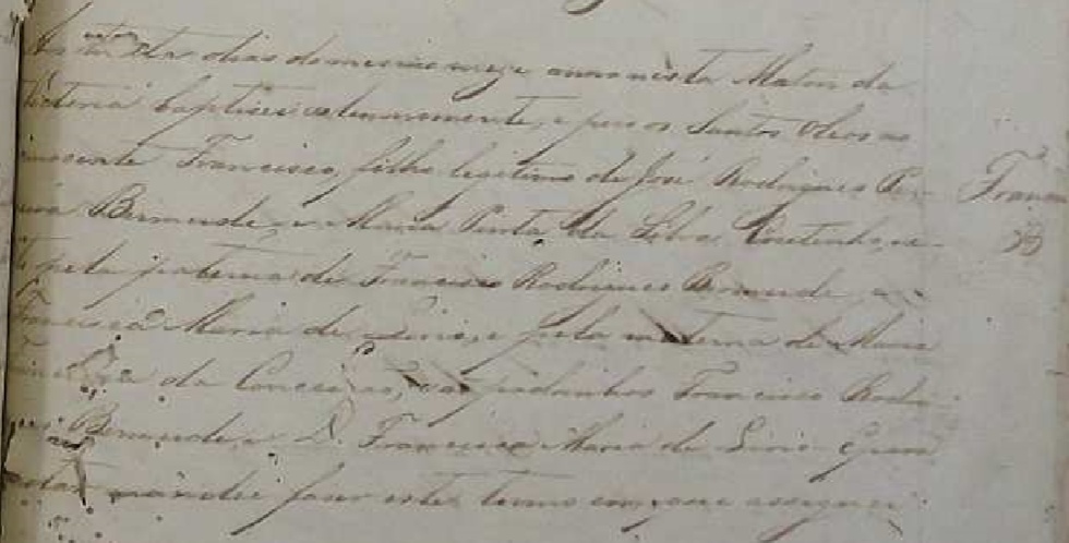 Francisco, batizado no dia 30/09/1850, na matriz de Vitoria-ES
