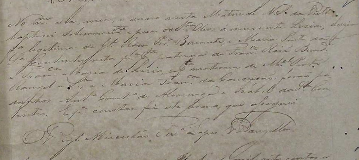 Luzia, batizada no dia 03/06/1852, na Matriz de Vitoria-ES