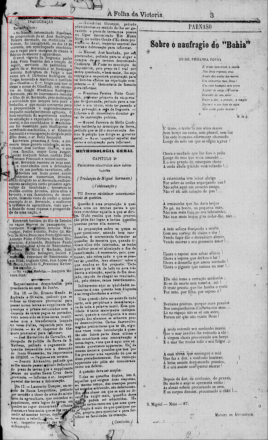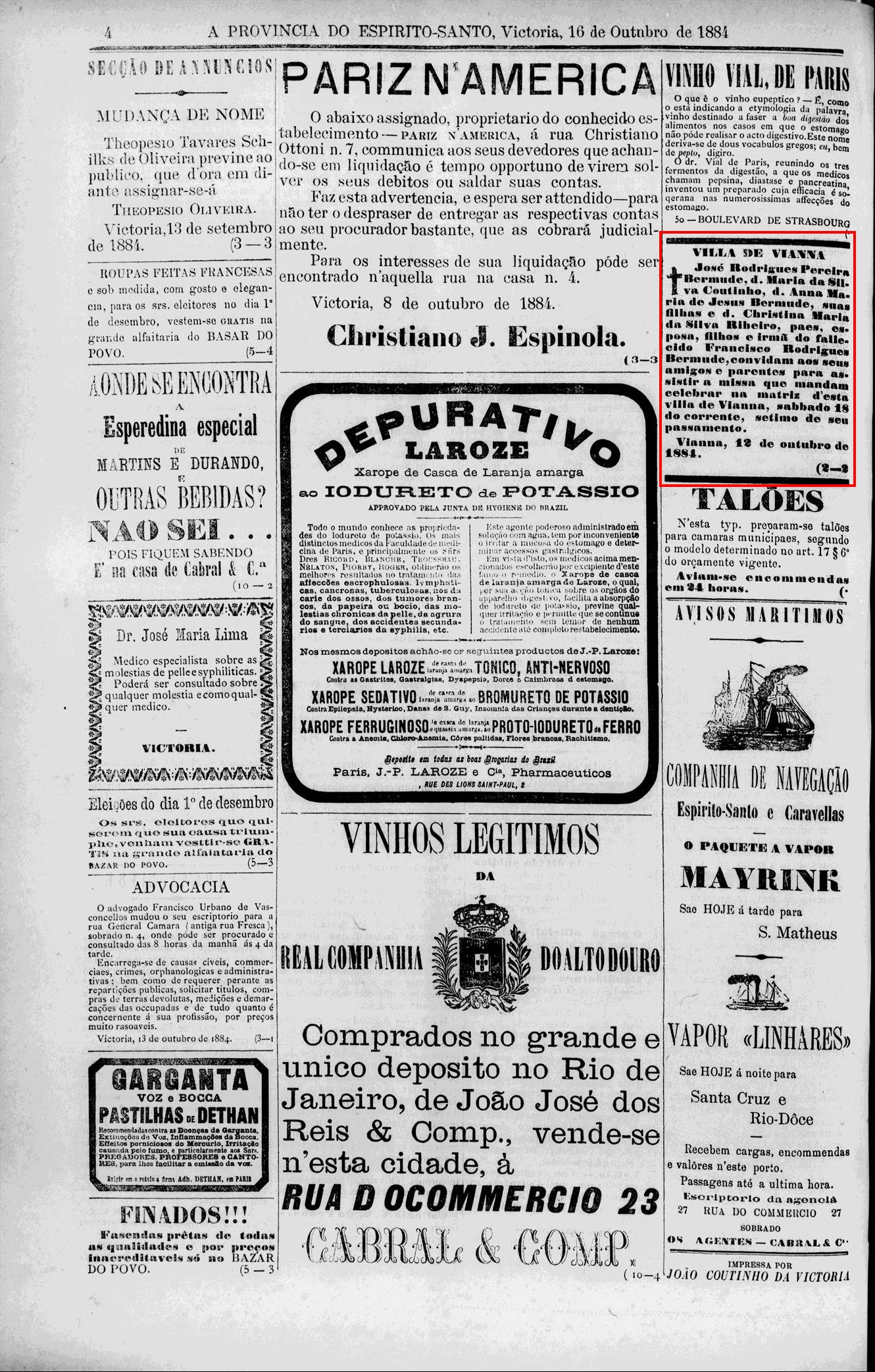 Francisco Rodrigues Bermudes, falecido em 1884, conforme jornal abaixo, c.c. Anna Maria de Jesus Bermudes