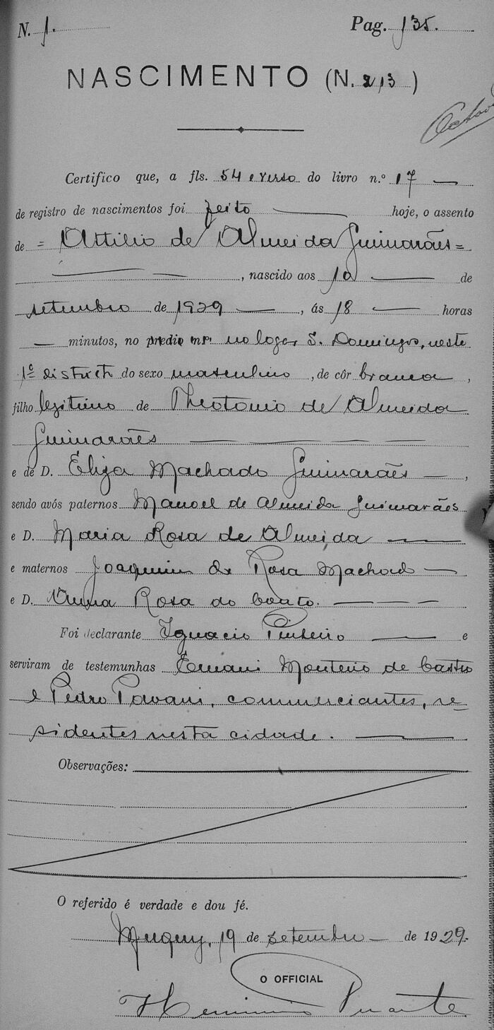 - Attilio de Almeida Guimarães, nascido no dia 10/10/1929, às 18horas em São Domingos, Distrito de Muqui-ES