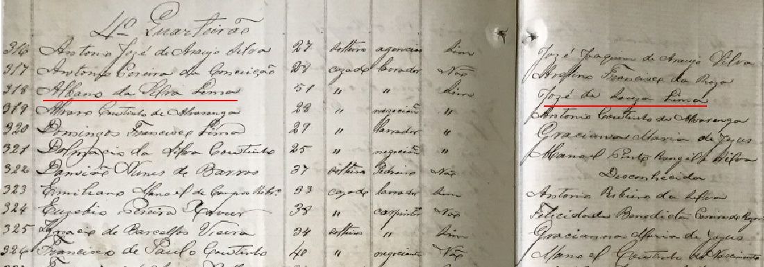 - Albano da Silva Lima (*1827 - ), em 1878 estava com 51 anos de idade, cazado, lavrador, filho de Jose de Souza Lima,