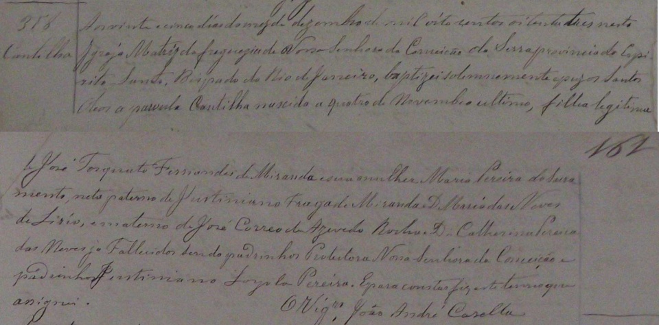 Cantilha, nascida no dia 04/11/1883, batizada no dia 25/12/1883, na Matriz da Serra-ES