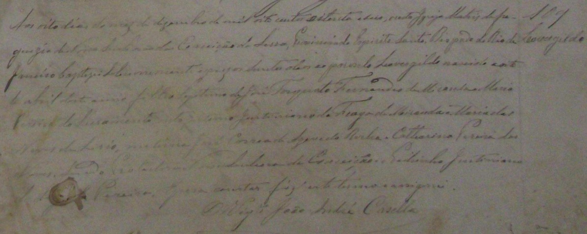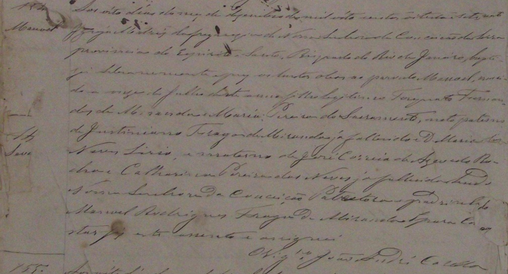 Manoel, nascido no dia 11/07/1887, batizado no dia 08/12/1887, na Igreja Matriz da Freguezia de Nossa Senhora da Conceição da Serra-ES