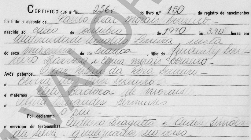 (04/11/1940, às 13 horas, Santa Rosa-ES)
