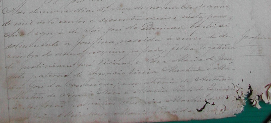 - Josefina, nascida no dia 05/12/1864, batizada no dia 16/11/1865, na Parochial Igreja de São Jose do Queimado-ES